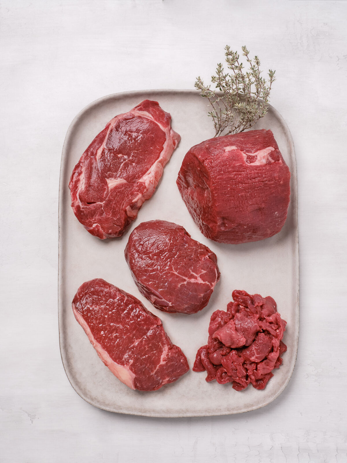 Das Bergrind Gourmet-Paket umfasst eine exklusive Auswahl der besten Stücke. Dank natürlicher Fütterung und langsamem Wachstum entsteht besonders zartes, fein marmoriertes und aromatisches Fleisch. Am Knochen gereift für höchste Qualität und in 2er-Portionen sorgfältig vakuumiert.